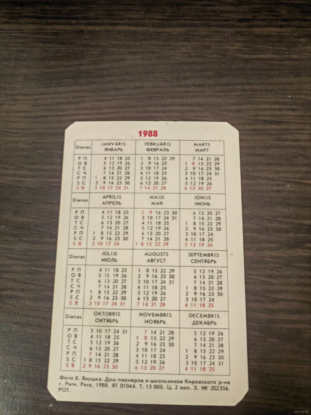 Календарик,рига,1988