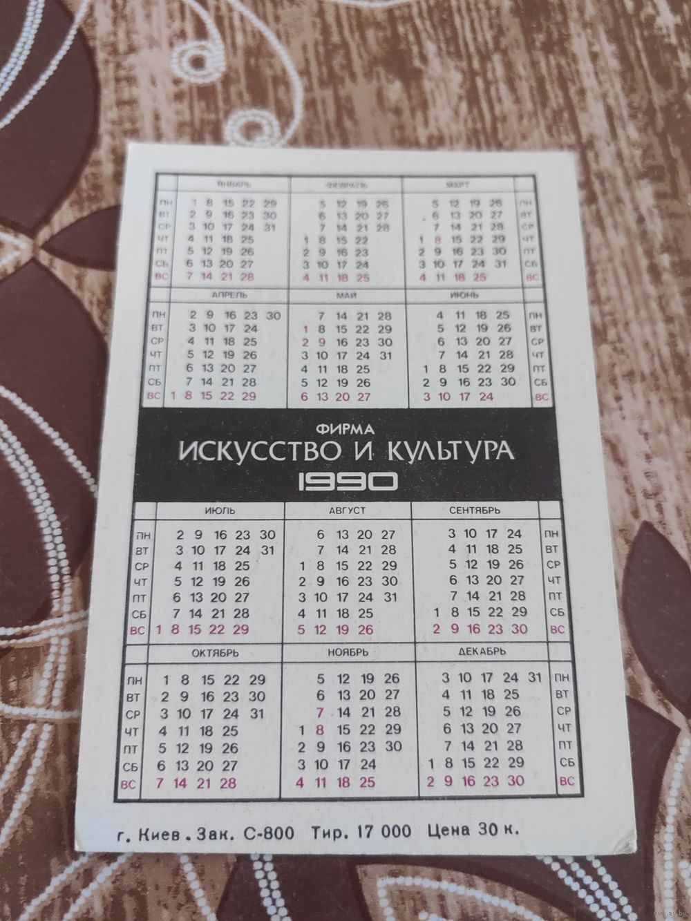 Календарик,рок,артисты,1990