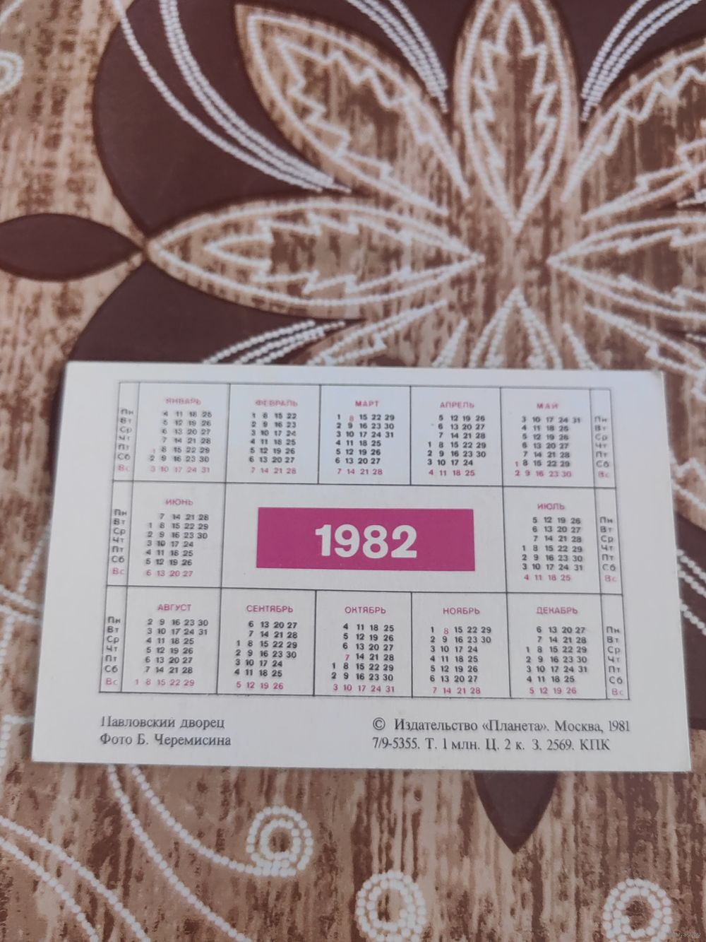 Календарик,саудовской дворец,1982