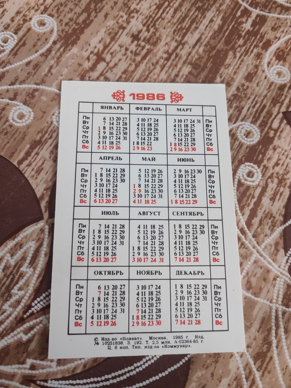 Календарик,серия города ссср,1986