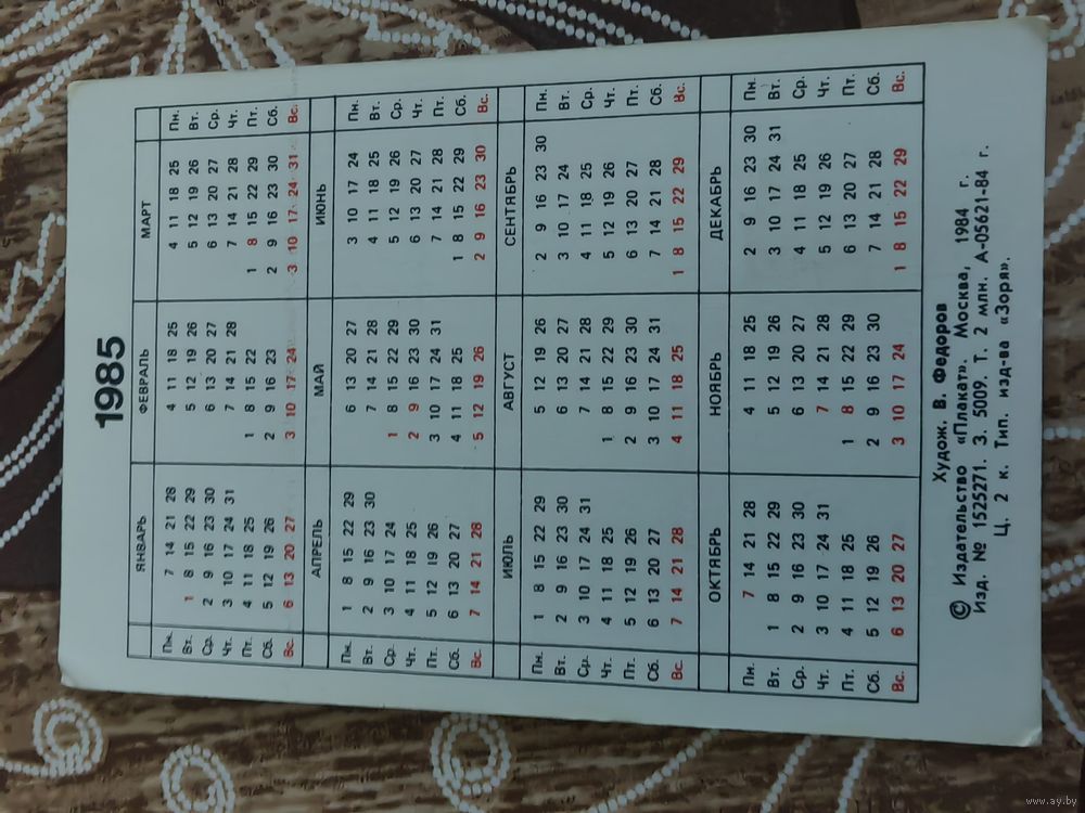Календарик,серия плакат,1985