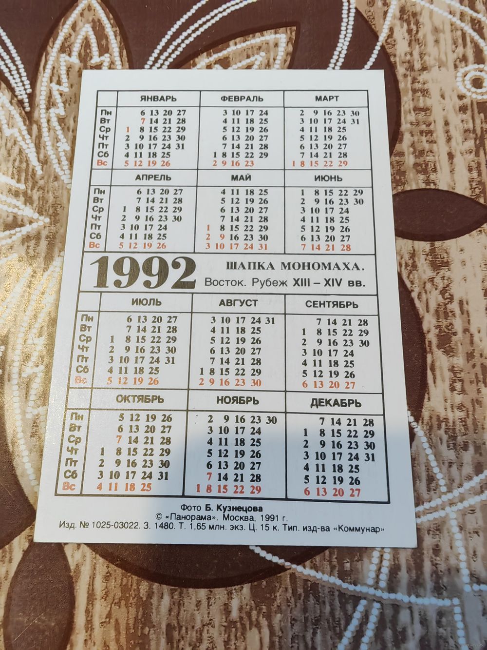 Календарик,сокровища кремля,1992