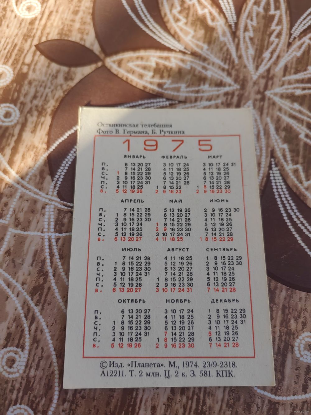 Календарик,ссср,1975