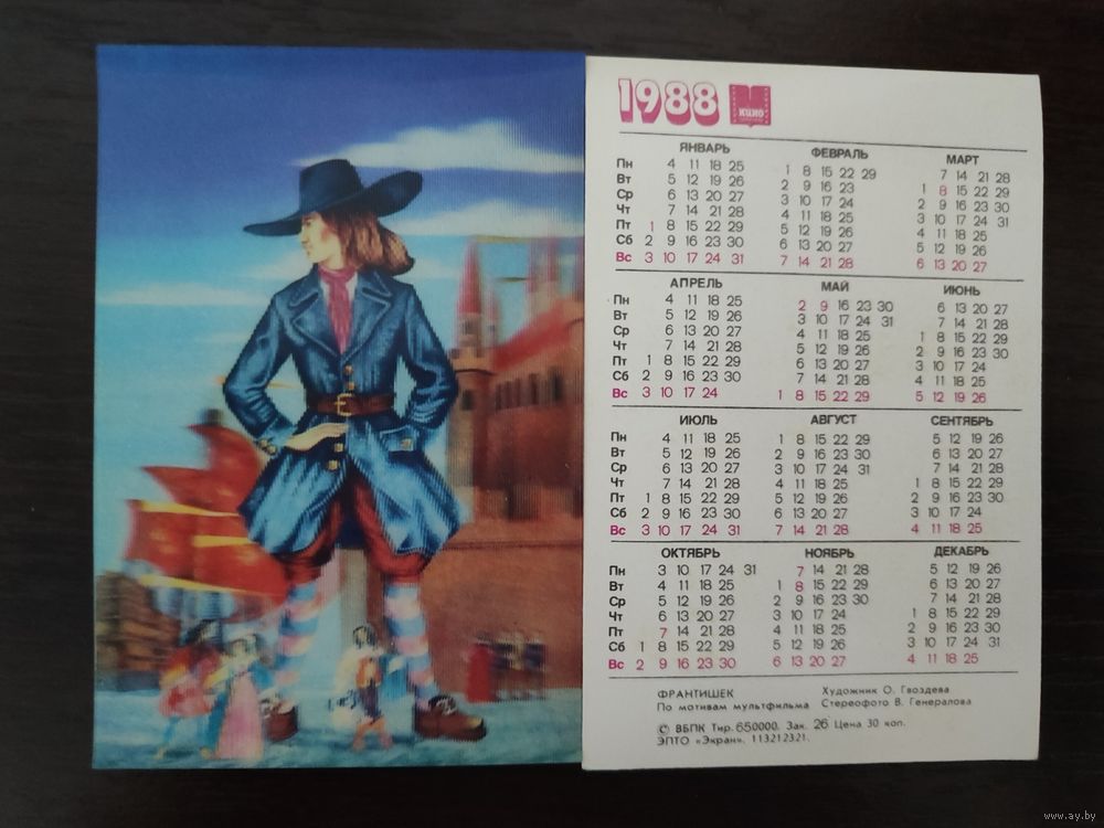 Календарик стерео 3 D Гулливер 1988г