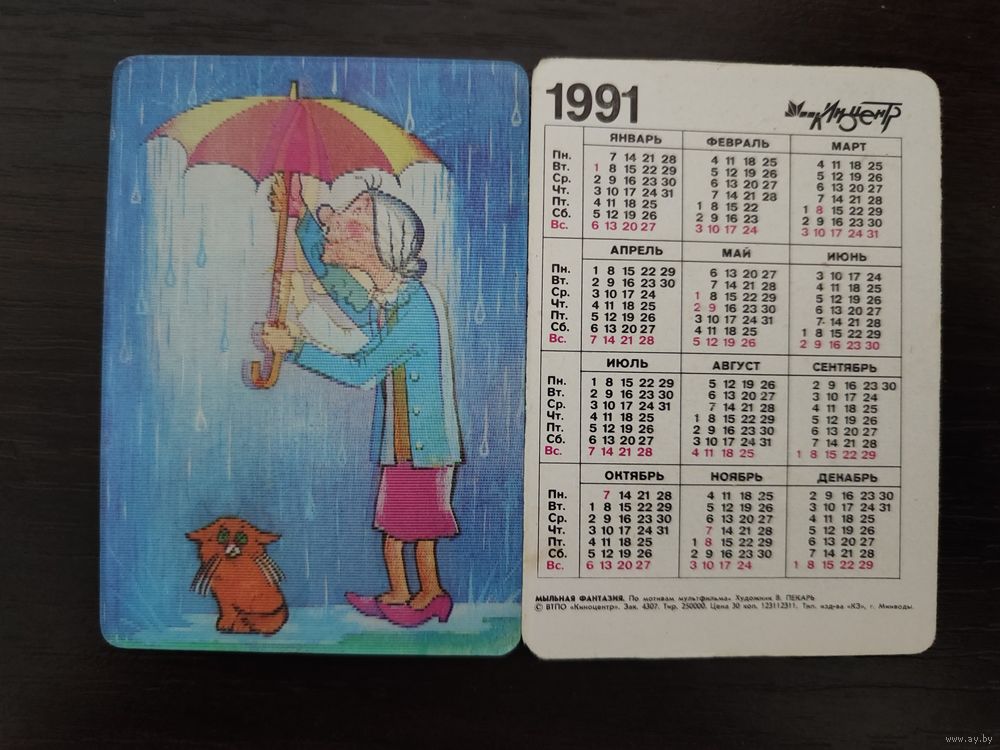 Календарик стерео 3D Переливной Всех поймал 1991г