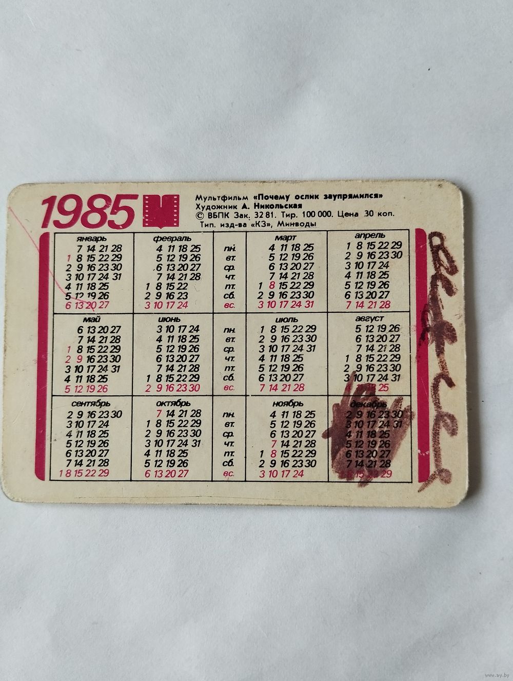 Календарик стерео карманный 1985.Почему ослик заупрямился.Ьираж 100000.