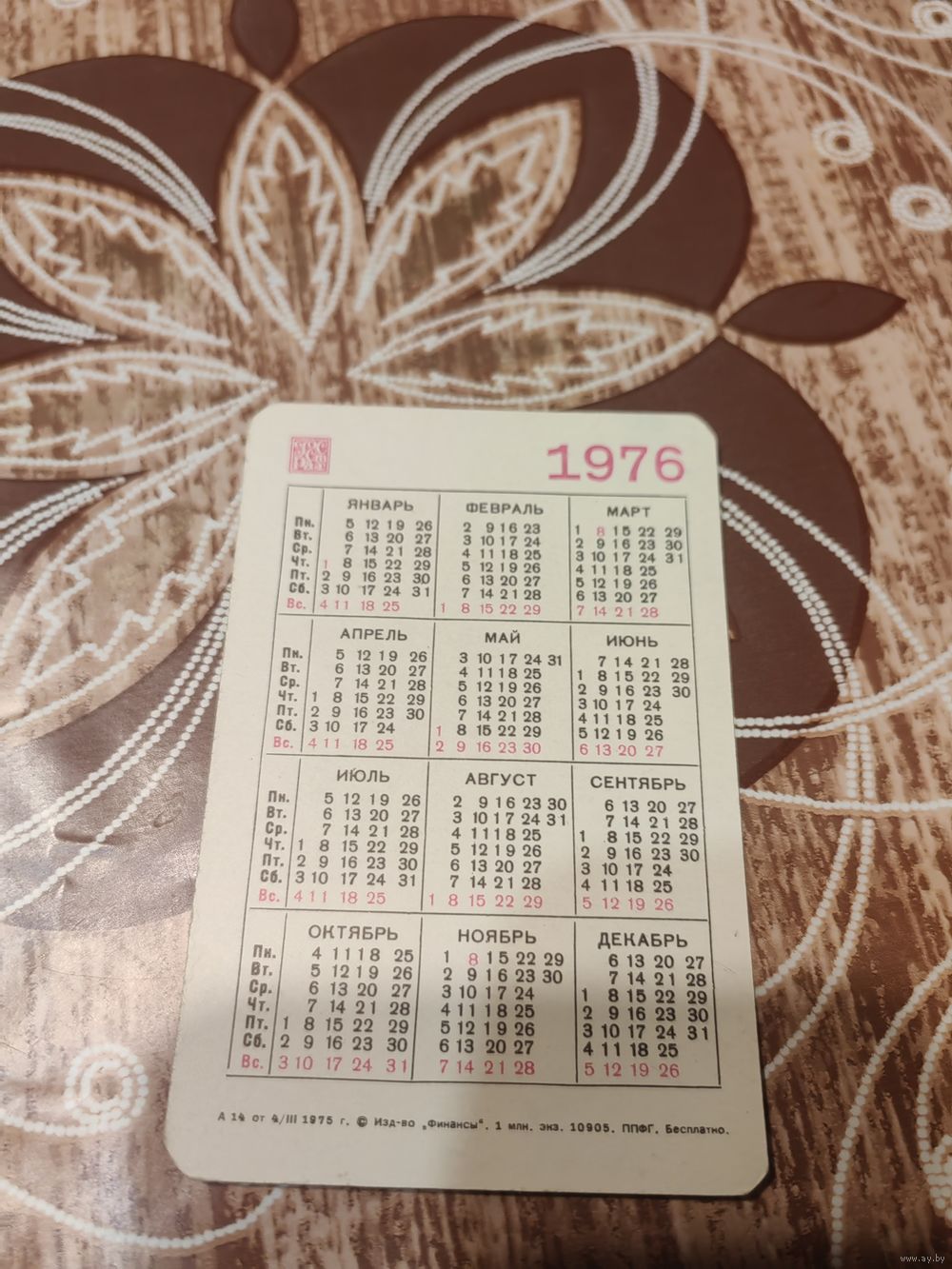Календарик,страхование,1976