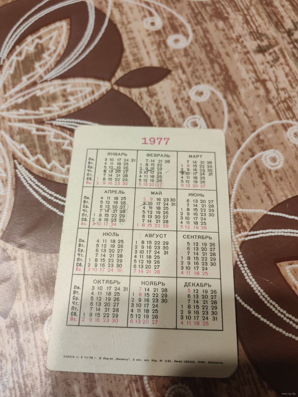 Календарик,страхование,1977
