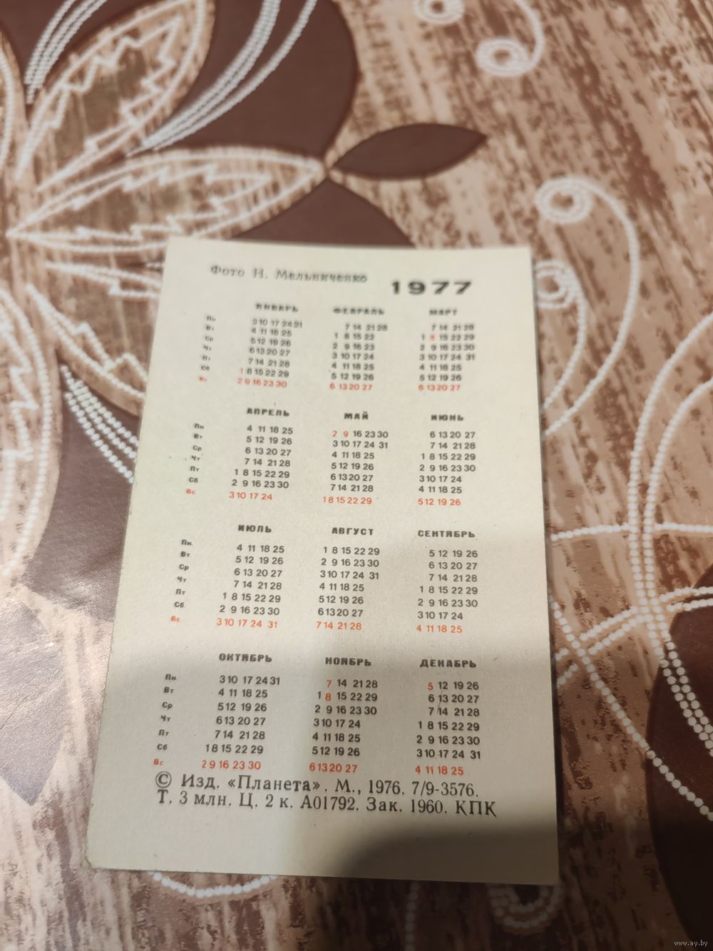 Календарик,страхование,1977