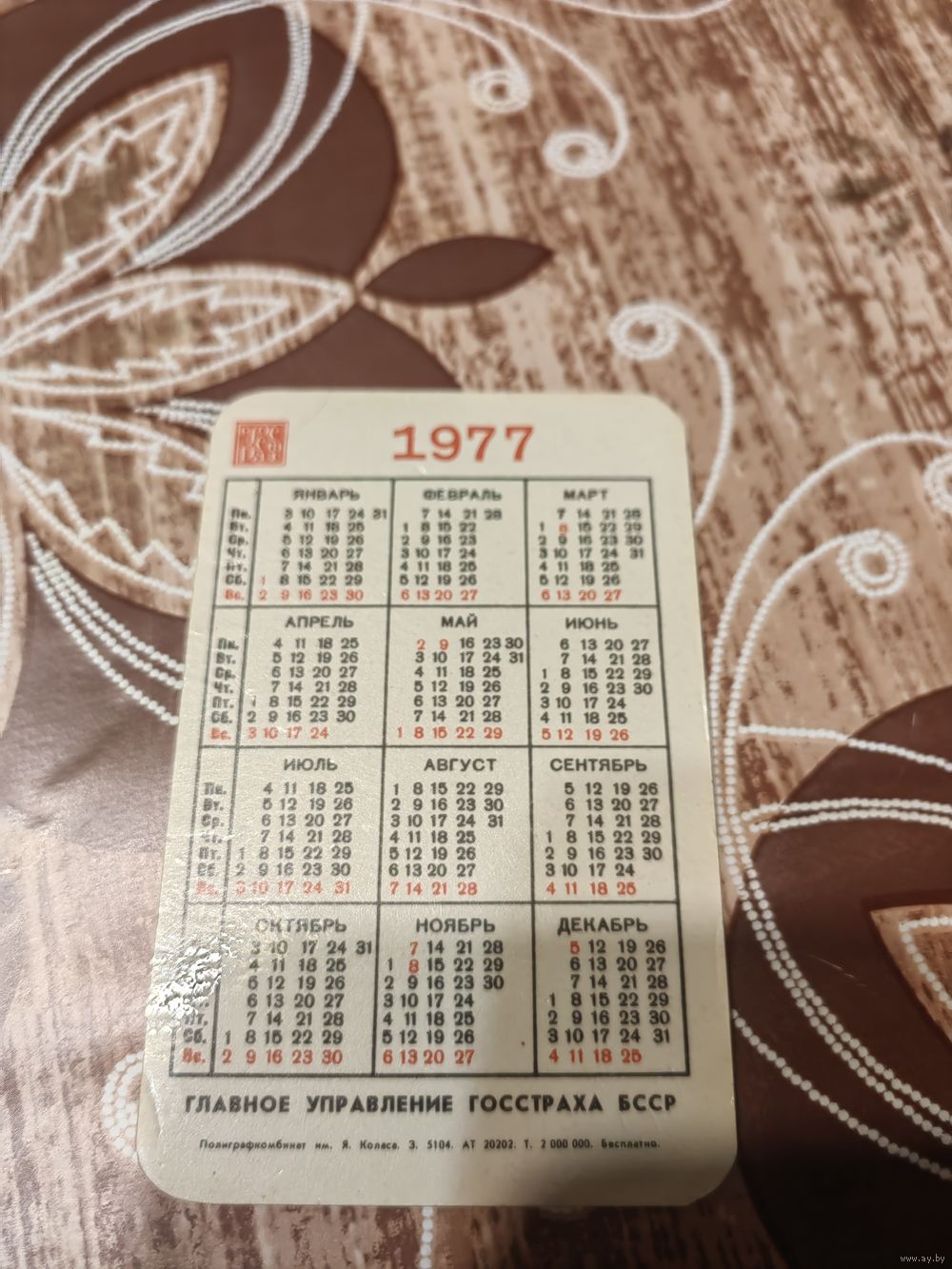 Календарик,страхование,1977