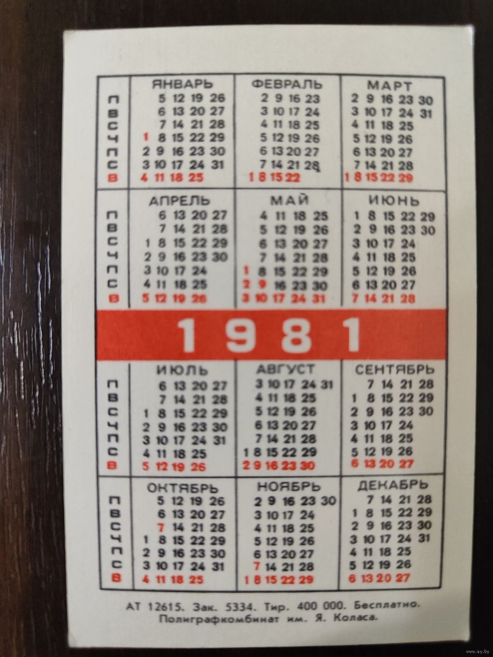 Календарик страхование 1981г