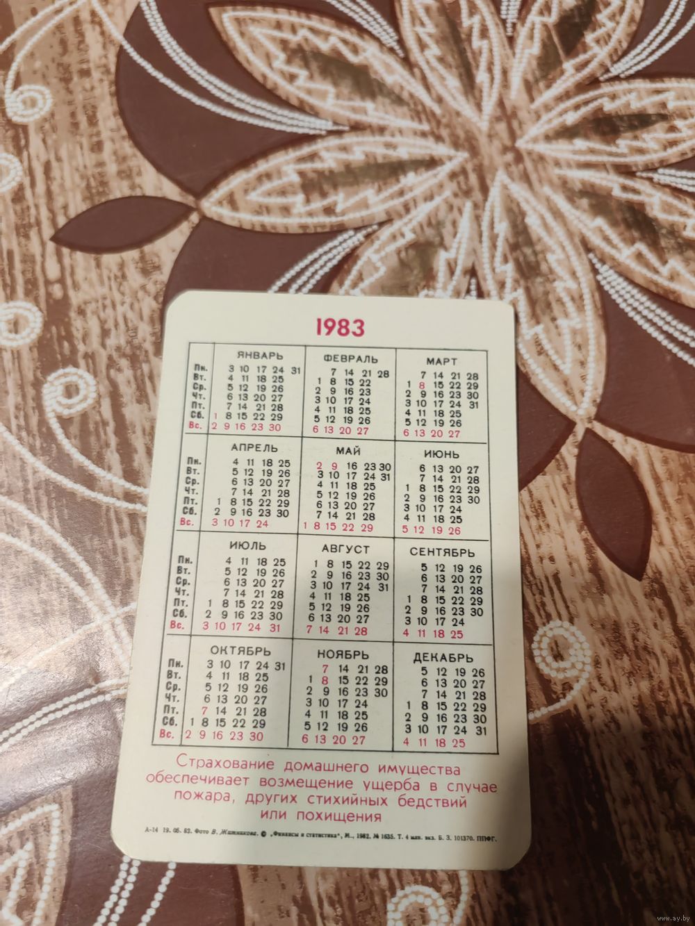 Календарик,страхование,1983