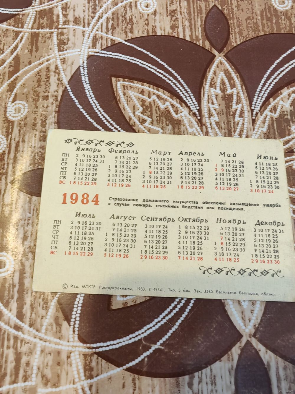 Календарик,страхование,1984
