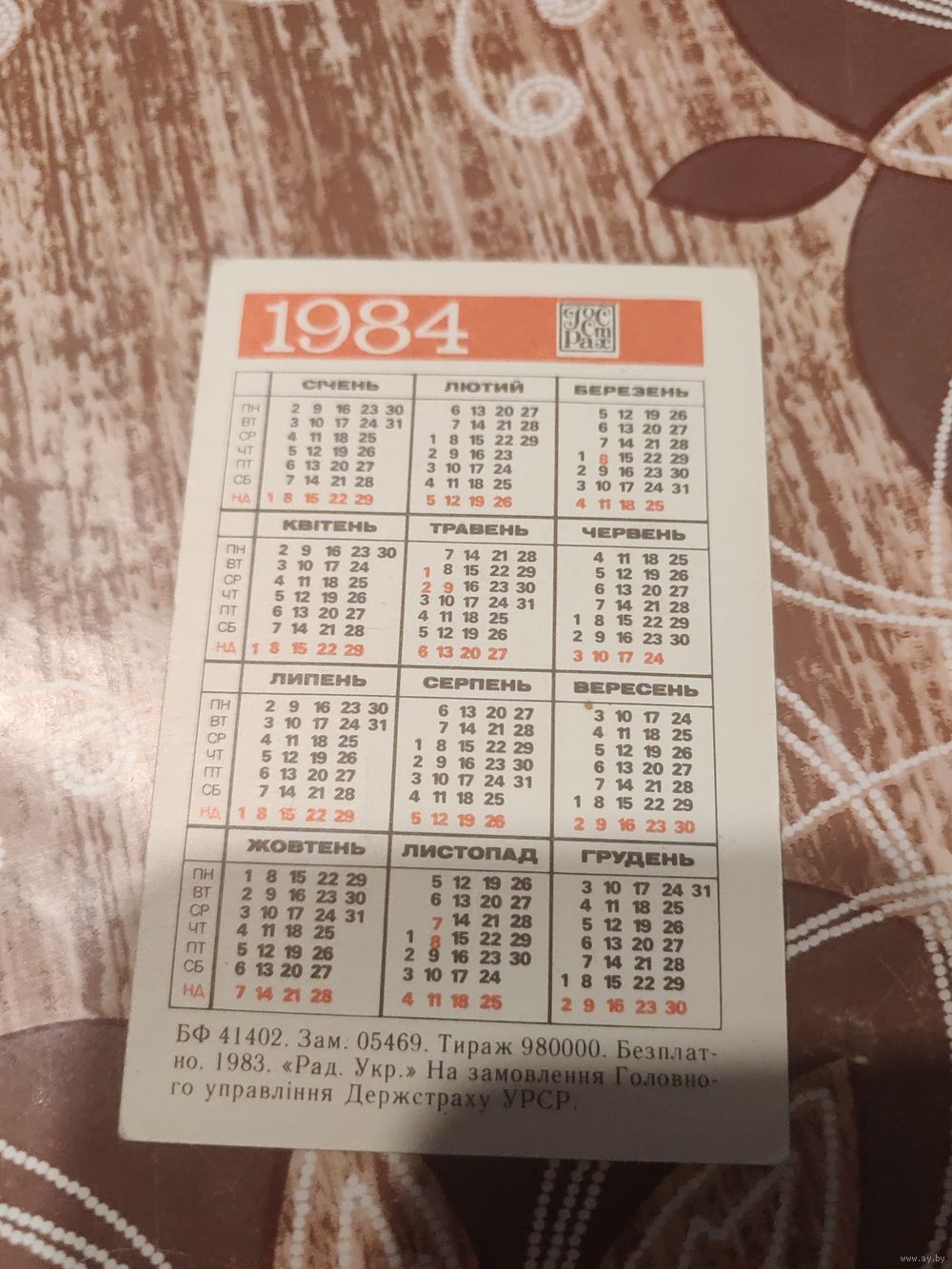 Календарик,страхование,1984