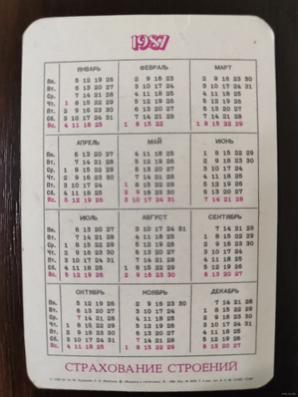 Календарик страхование 1987г