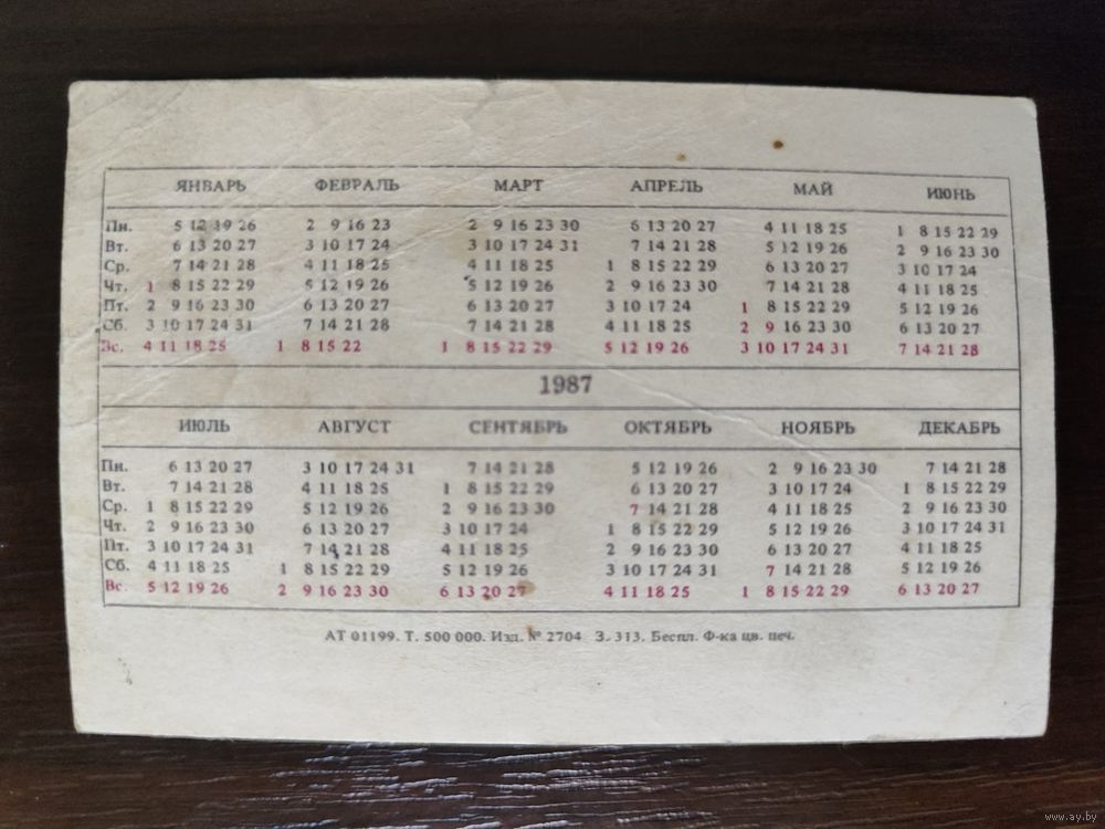 Календарик Страхование транспорта 1987г