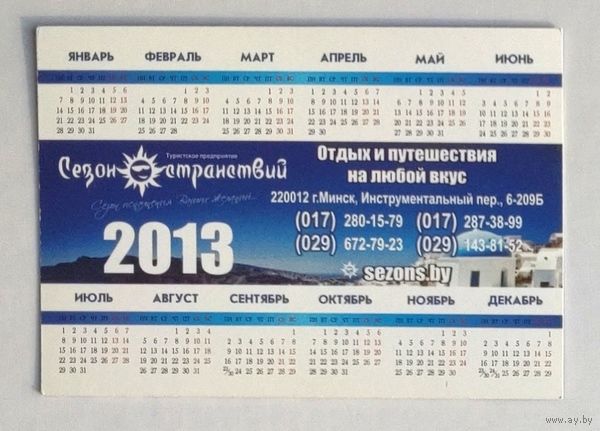 Календарик. Туроператор "Сезон странствий". 2013.