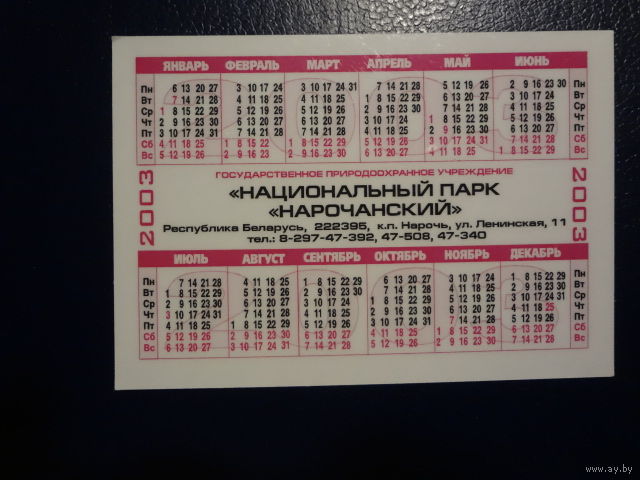 Календарик2003 г. Национальный парк Нарочанский. Гидроцикл.