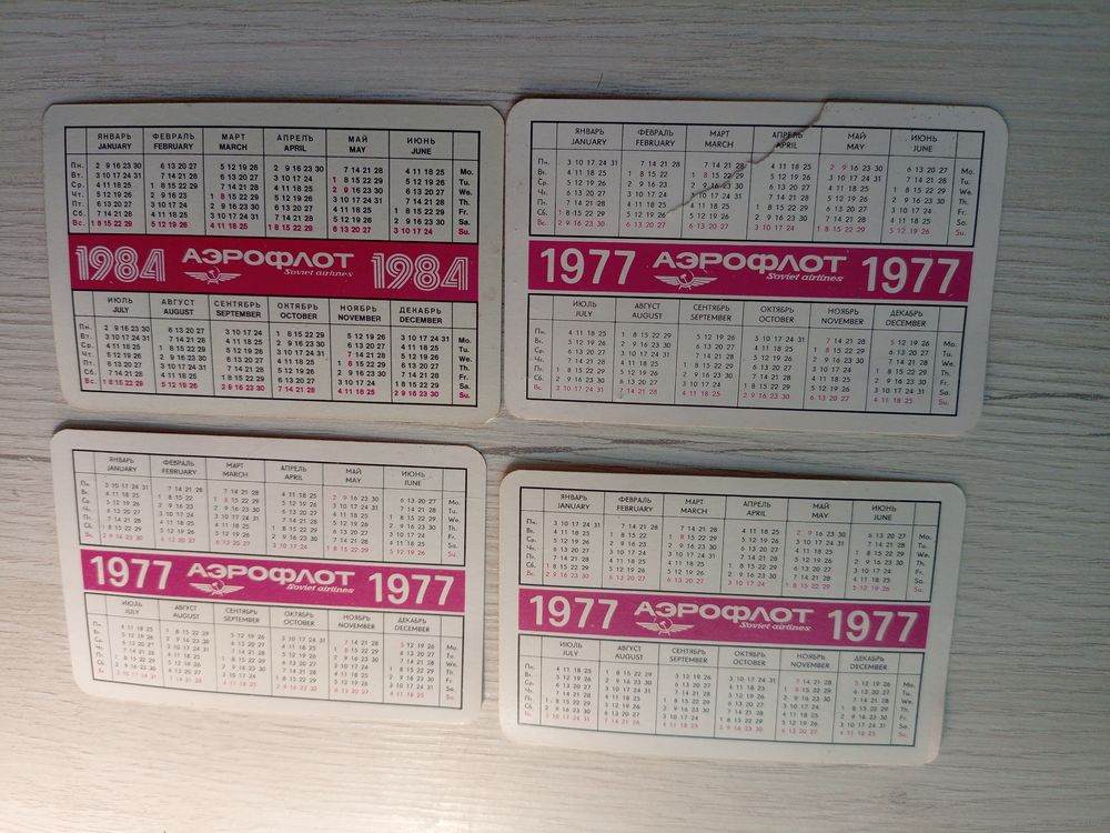 Календарики "Аэрофлот"одним лотом