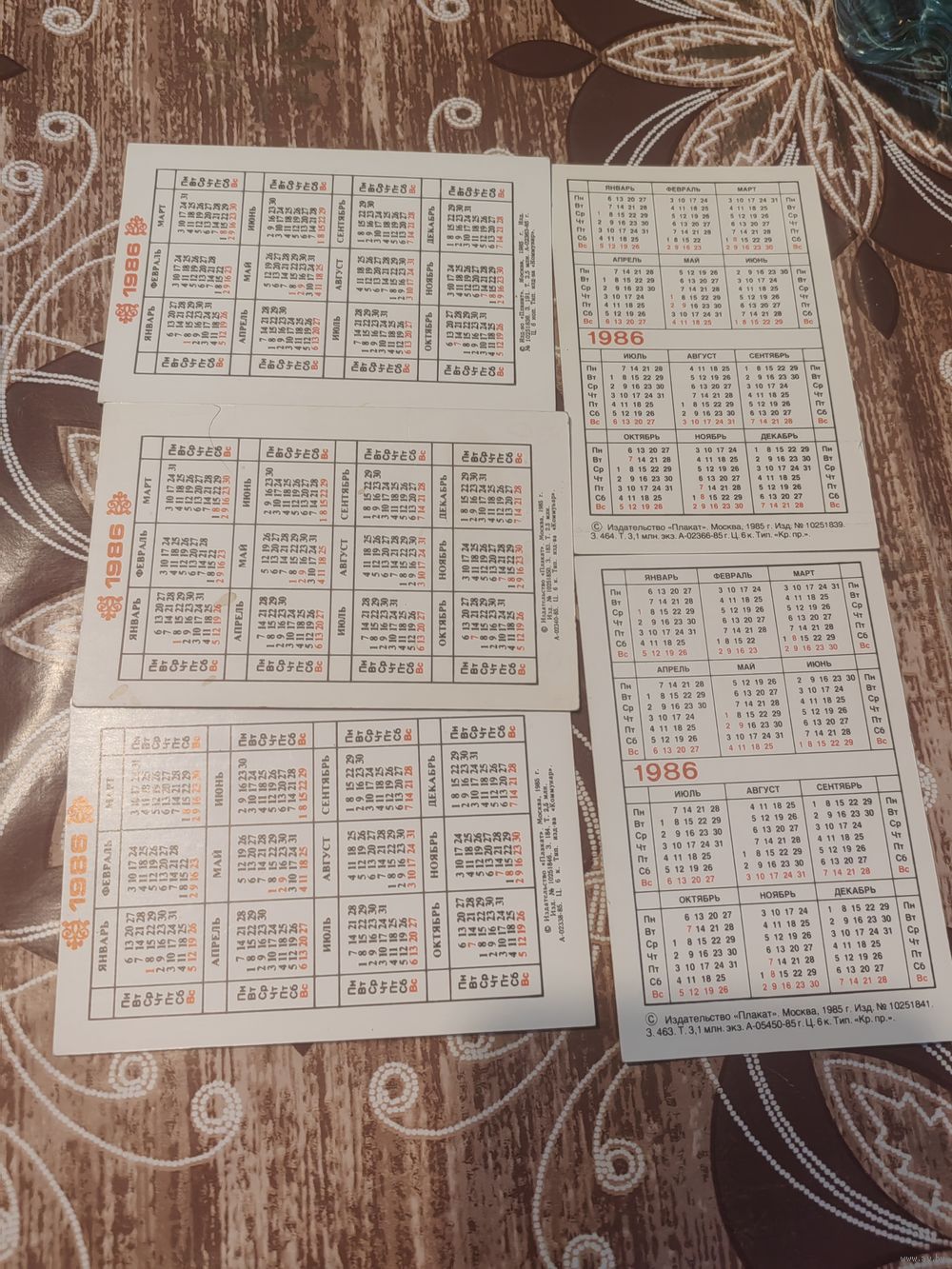Календарики,города ссср,1986