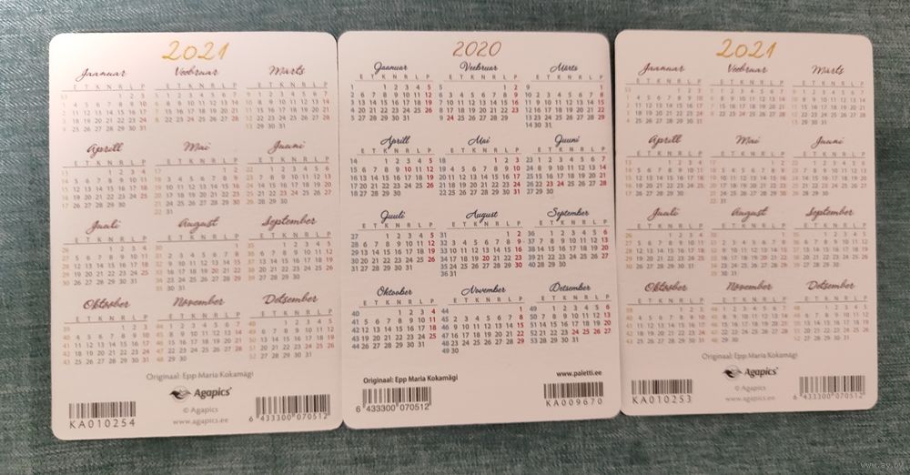 Календари эстонские, авторские, плотный картон.