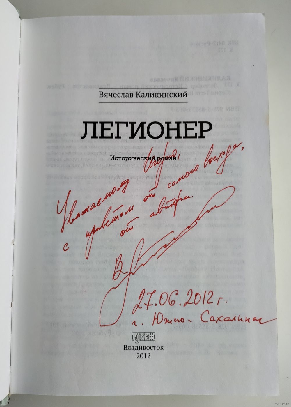 Каликинский В. Легионер. Исторический роман. Серия: Terra Incognita. Владивосток: Рубеж, 2012г., 880 с. Твёрдый переплёт, слегка увеличенный формат. (ISBN: 978-5-85538-063-7 / 9785855380637). Тираж 3000 экз.