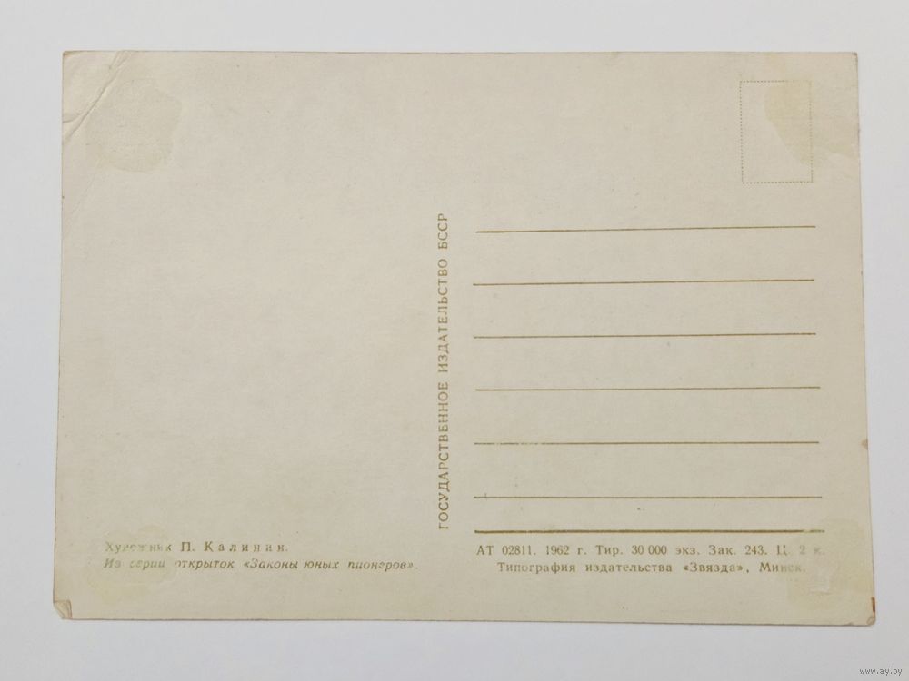 Калинин Законы юных пионеров 1962 Тир.30 000 чистая открытка СССР (БССР, Беларусь)