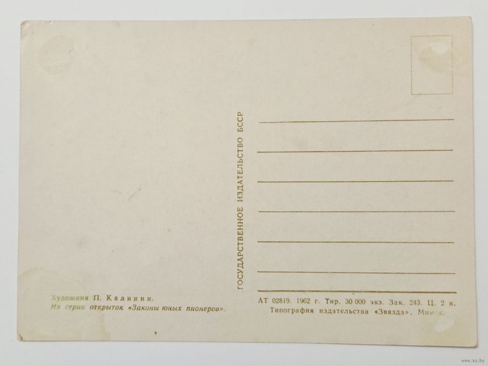 Калинин Законы юных пионеров 1962 Тир.30 000 чистая открытка СССР (БССР, Беларусь)
