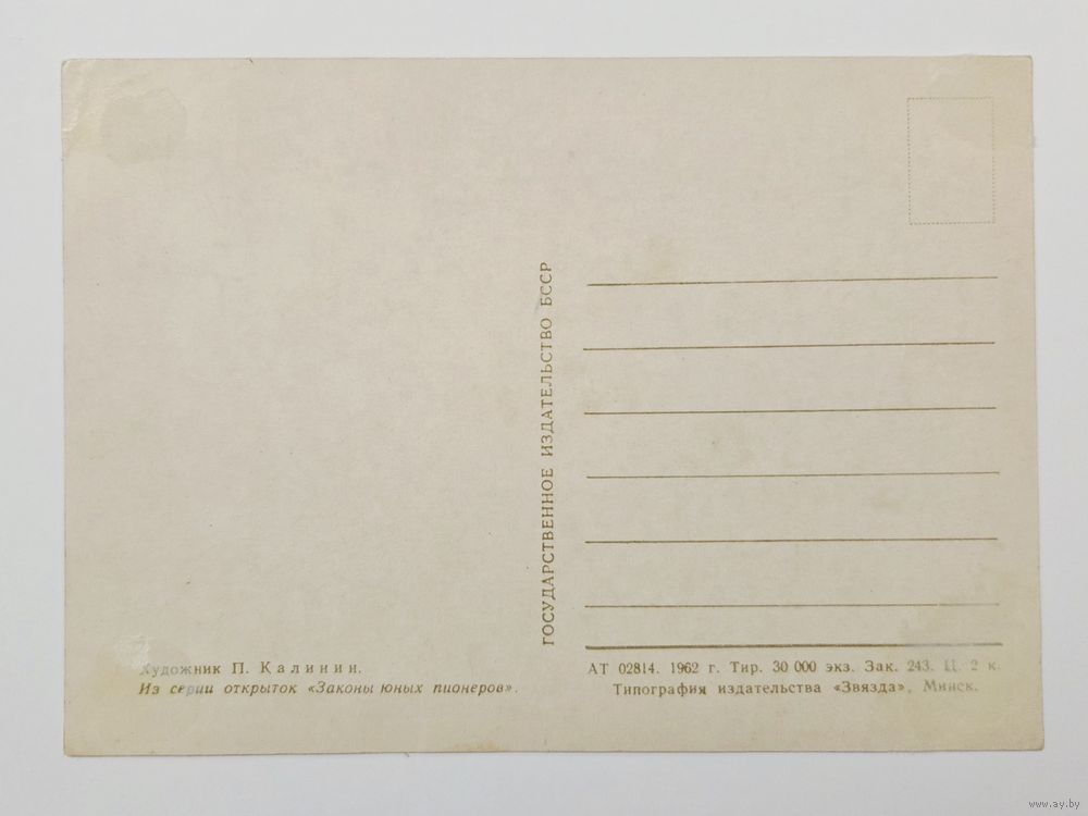Калинин Законы юных пионеров 1962 Тир.30 000 чистая открытка СССР (БССР, Беларусь)