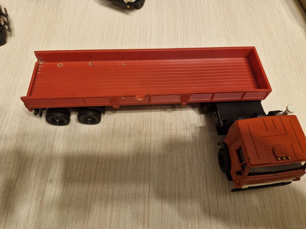 Редчайшая модель раннего 5410 с часами. Часы были аккуратно демонтированы,тент благополучно утерян. При желании можно запилить из обычного тента. Декали уже есть в продаже в РФ. Часы-обычная Электроника 11 без корпуса. Купить на барахолке рабочие-не проблема.Самое ценное тут есть и без поломок-нижняя часть прицепа со всеми отверстиями. Ранний выпуск. Раритетище!