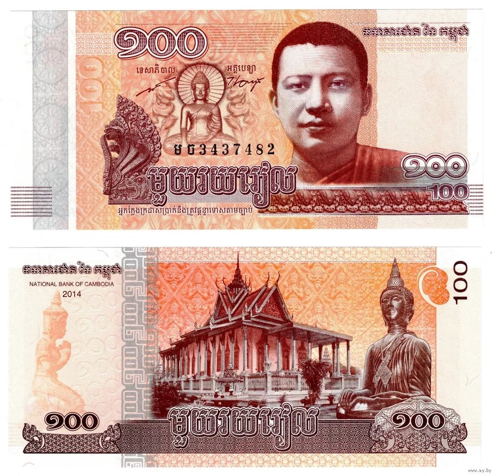 Камбоджа 100 риелей образца 2014 года UNC p65
