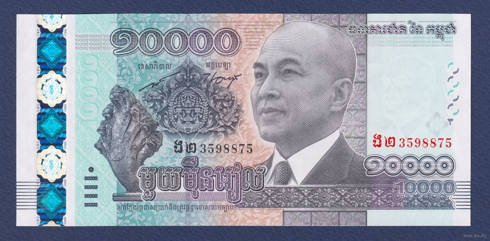 Камбоджа, 10000 риелей 2015 г, P-69 (памятная - 62 года со дня рождения короля Нородома Сиамони), UNC