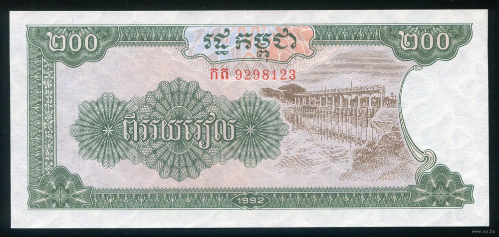Камбоджа 200 риэлей 1992 г. P37. UNC