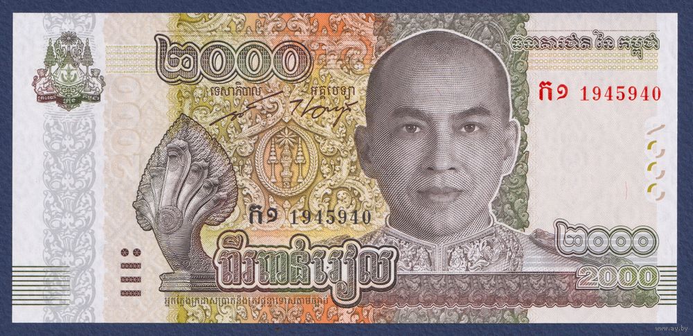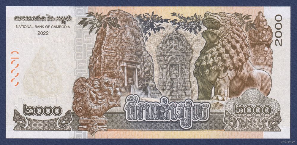 Камбоджа, 2000 риелей 2022 г, P-W67A (король Нородом Сиамони, древние руины), UNC