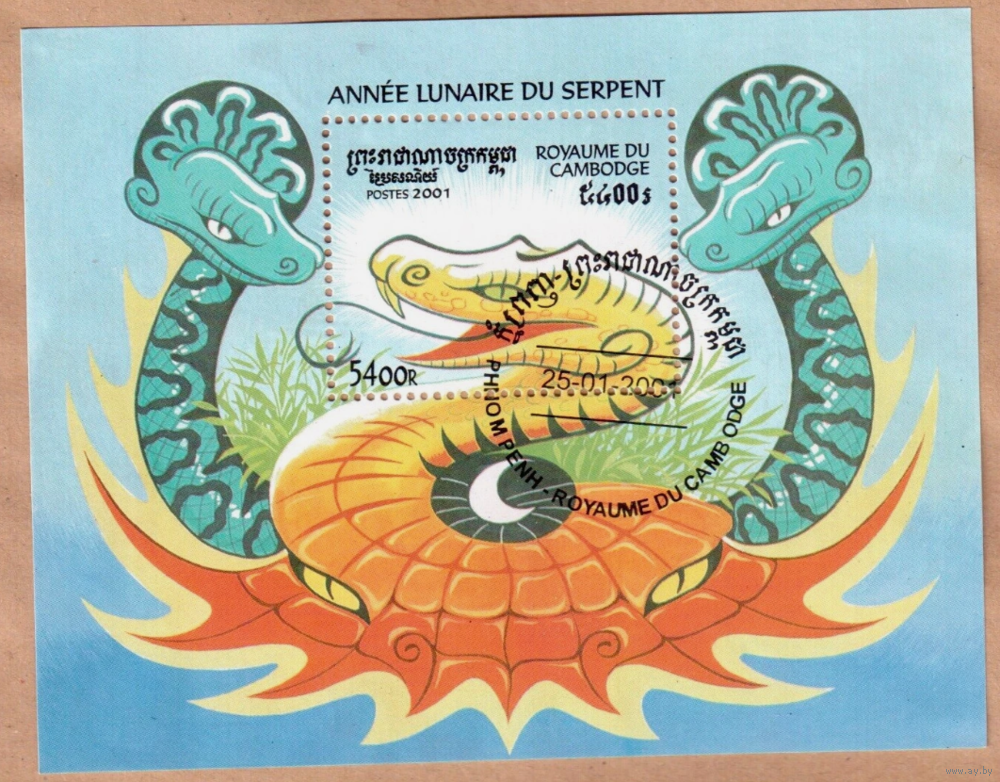Камбоджа 2001 зодиак год змеи фауна лунный календарь гороскоп