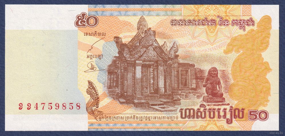 Камбоджа, 50 риелей 2002 г, P-52 (храм Прэахвихеа), UNC