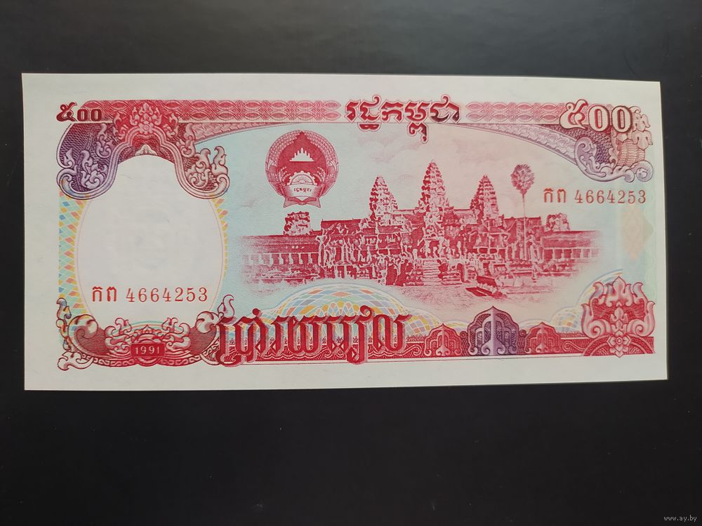 Камбоджа. 500 риелей (образца 1991 года, P38, UNC)