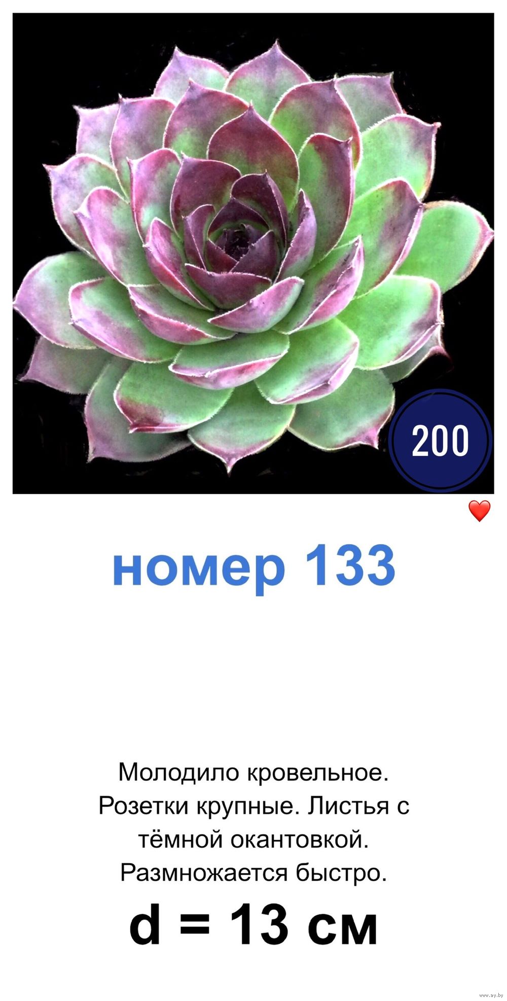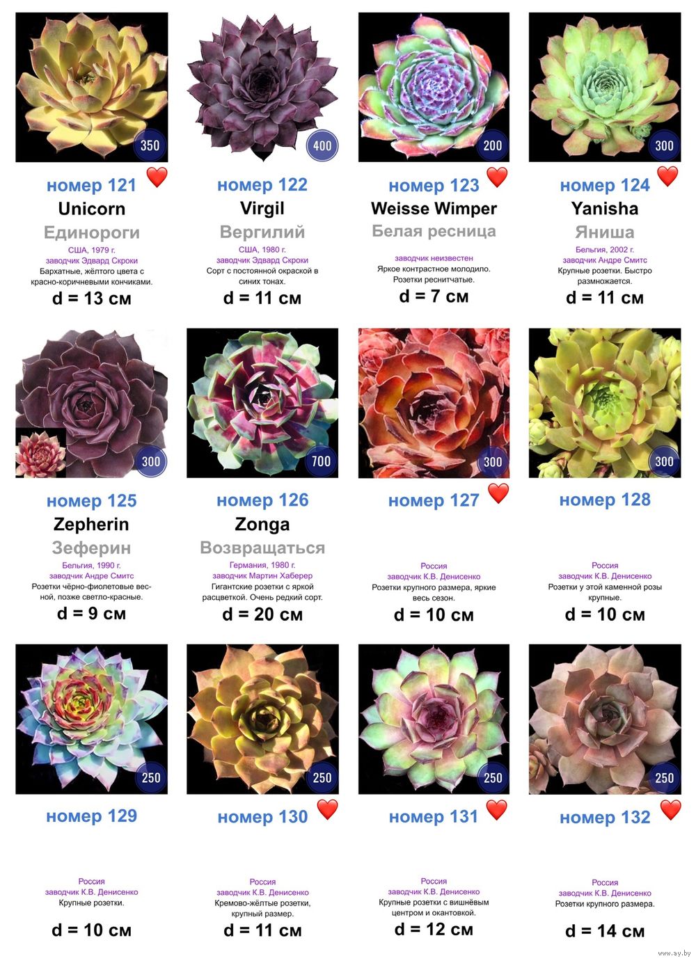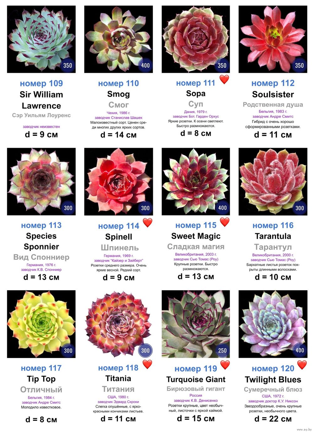 При покупке от 6 штук молодил одного сорта, под фото которых после номера сорта стоит значок «сердце», 50 % скидка!