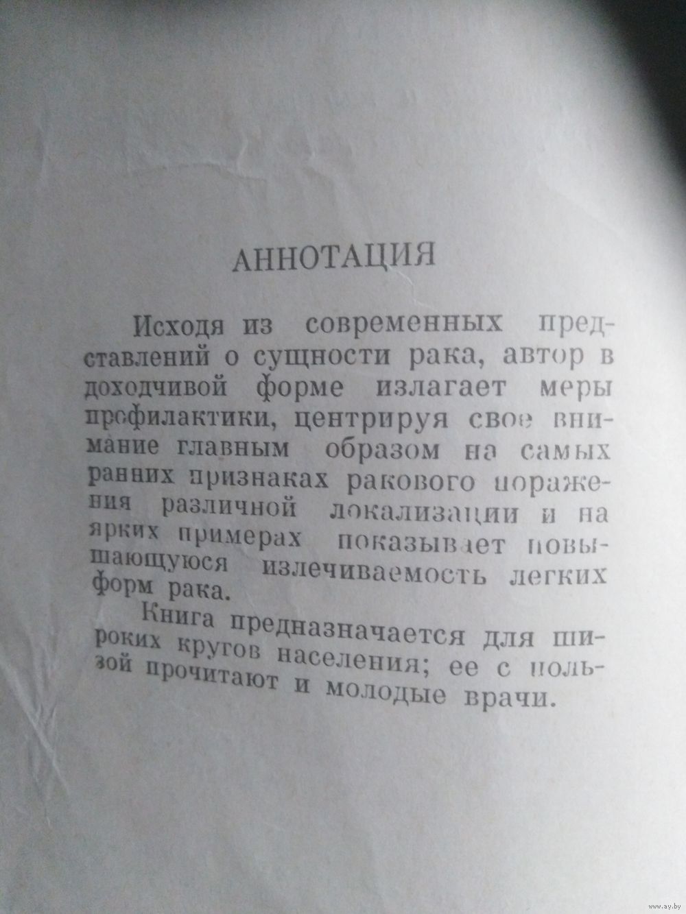 Исходя из современных представлений о сущности рака, автор в доходчивой форме излагает меры профилактики, центрируя свое внимание главным образом на самых ранних признаках ракового поражения различной локализации и на ярких примерах показывает повышающуюся излечиваемость лёгких форм рака.