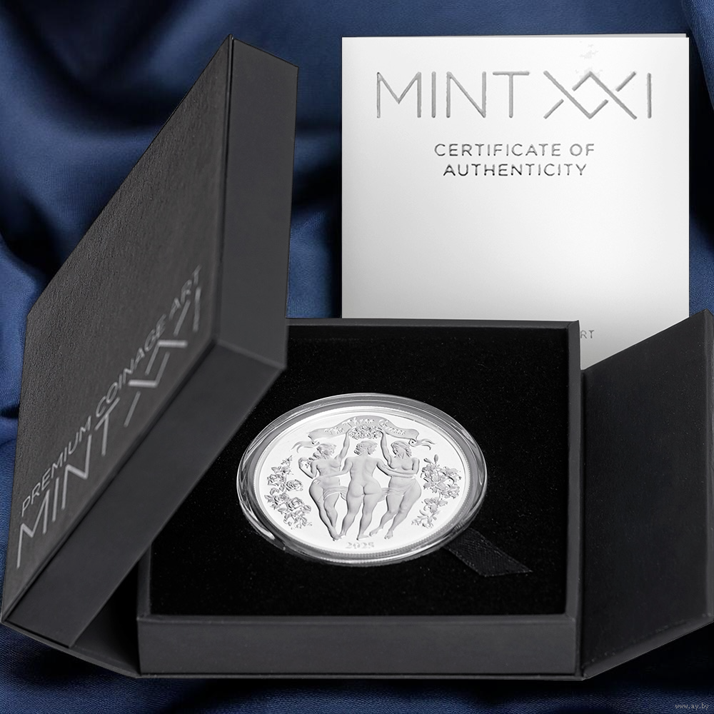 Просьба не путать с монетой Камерун 1000 франков 2025г. «Три Грации» в качестве Brilliant Uncirculated (BU) и тиражом 10 000 шт.