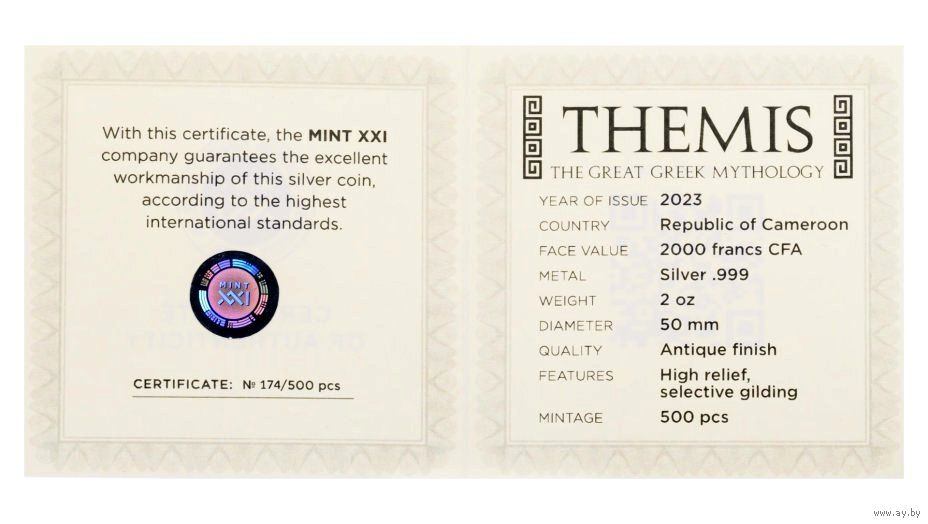 Детализация и высокий рельеф монеты достигнут благодаря применению уникальной технологии чеканки Smartminting.