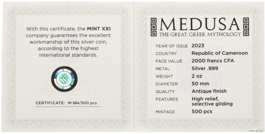 Камерун 2000 франков 2023г. "Медуза". Монета в капсуле; подарочном футляре; номерной сертификат; коробка. СЕРЕБРО 62,20гр.(2 oz).