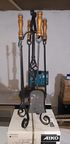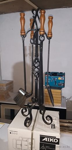 Тяжёлый, вес 8-10 кг., приблизительно. Щётка, совок, кочерга, щипцы.