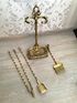Набор изготовлен из позолоченной бронзы. Италия 1940 годы. Прекрасно выполненные детали завершаются в верхней части набора шишкой, символом источника жизни (во многих культурах). В христианстве сосна считается деревом жизни, а ее шишки являются символами воскресения и бессмертия.