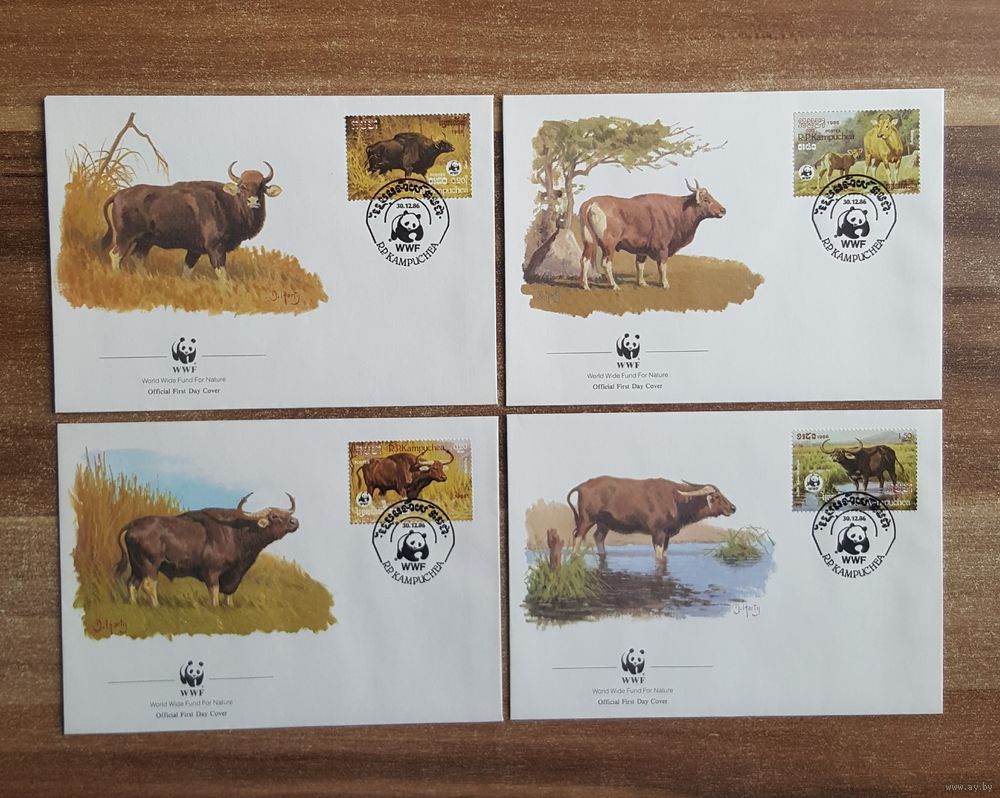 Кампучия. 1986. Конверт Первого Дня. Фауна. Буйволы