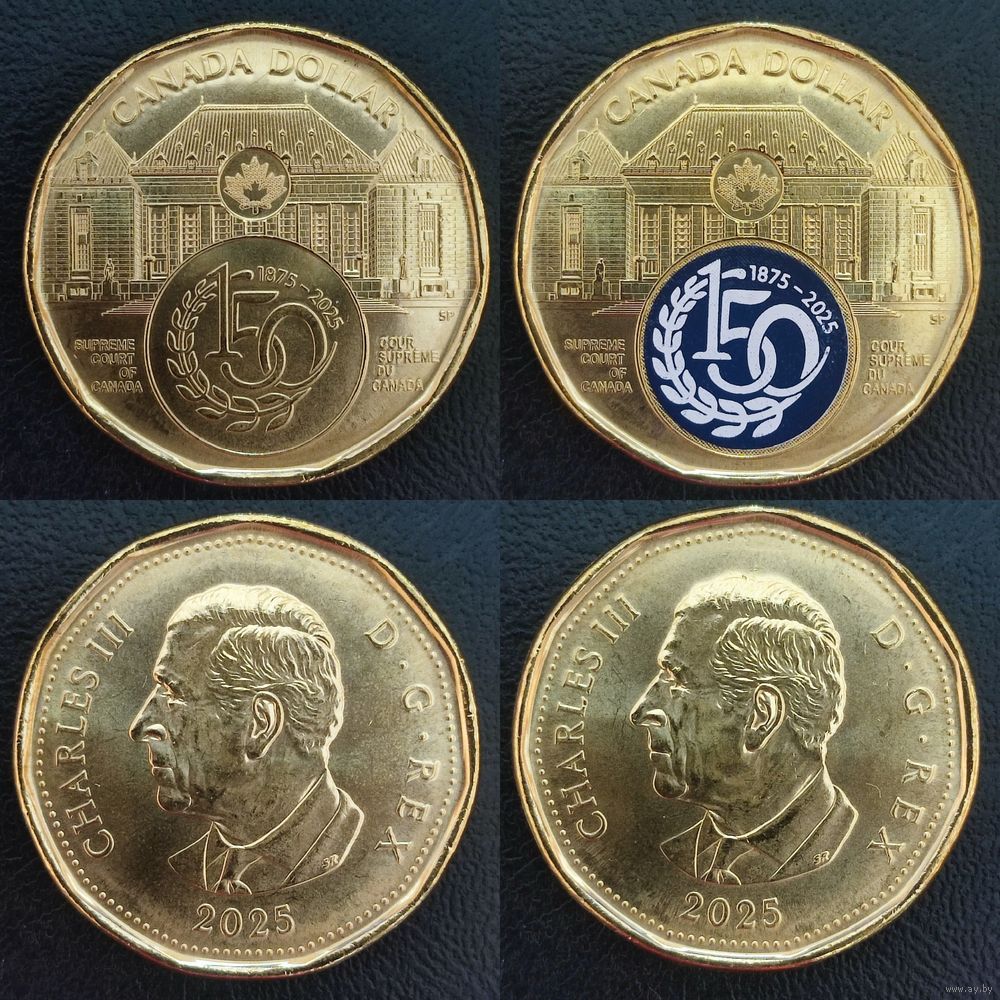 Канада 1 доллар 2025 г. (2 шт. простая и цветная) Верховный суд 150 лет.