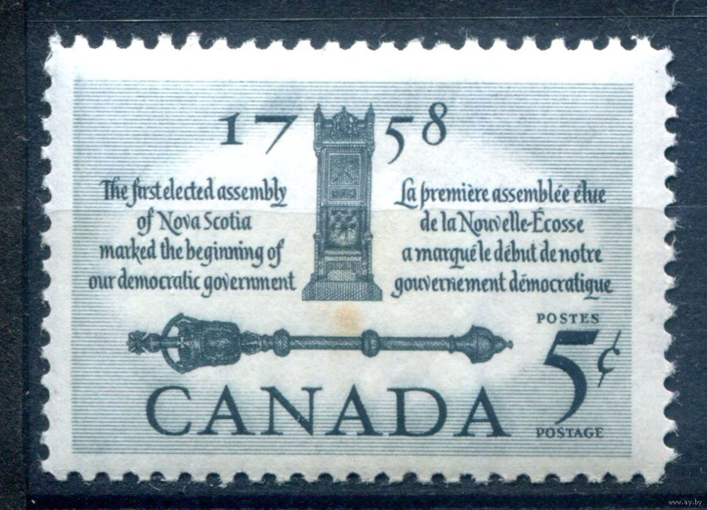 ![Канада - 1958г. - 200 лет первого национального собрания - 1 марка - полная серия, MLH с пятном на лицевой стороне [Mi 329]. #3-WK-100-A-2](https://s4-lot.aystatic.by/550x510/416/252/5040/5040252416_0.jpg)
