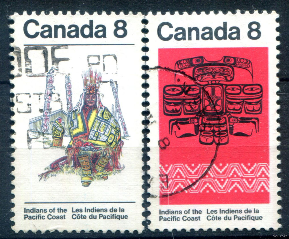 Канада - 1974г. - индейцы, национальные костюмы, символика - 2 марки - полная серия, гашёные [Mi 549-550]. #3-WB-90-A-2