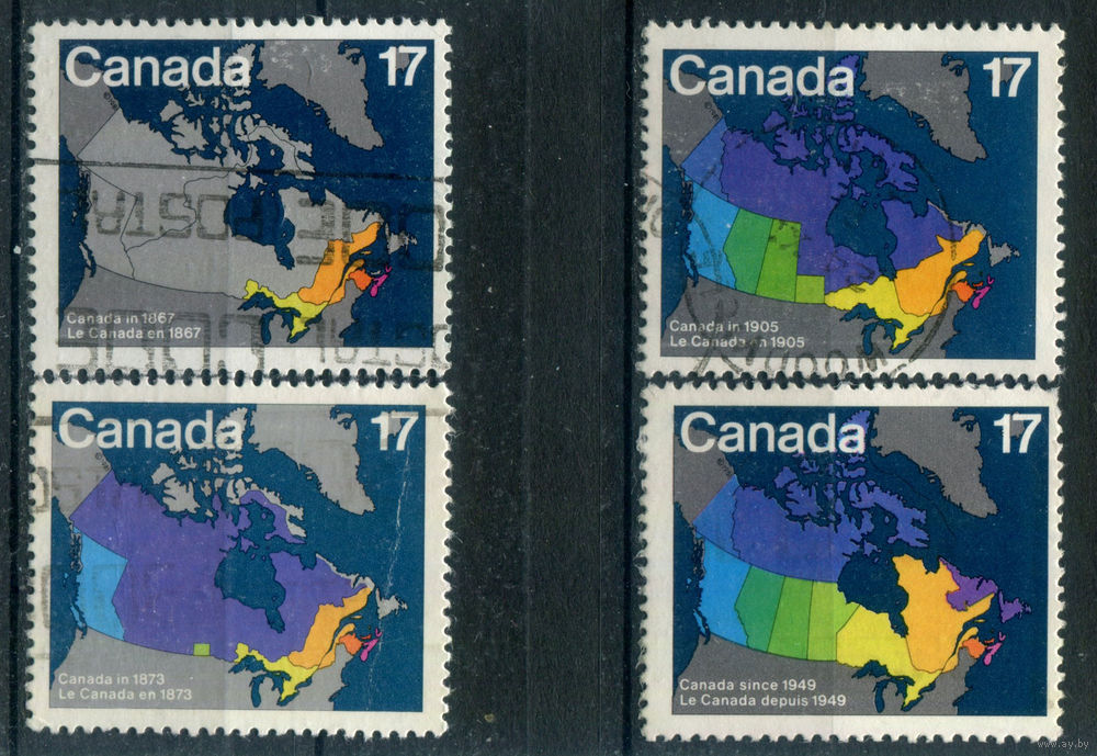 Канада - 1981г. - карта Канады в разные периоды времени - 4 марки - полная серия, гашёные [Mi 801-804]. #3-WB-76-KS-3