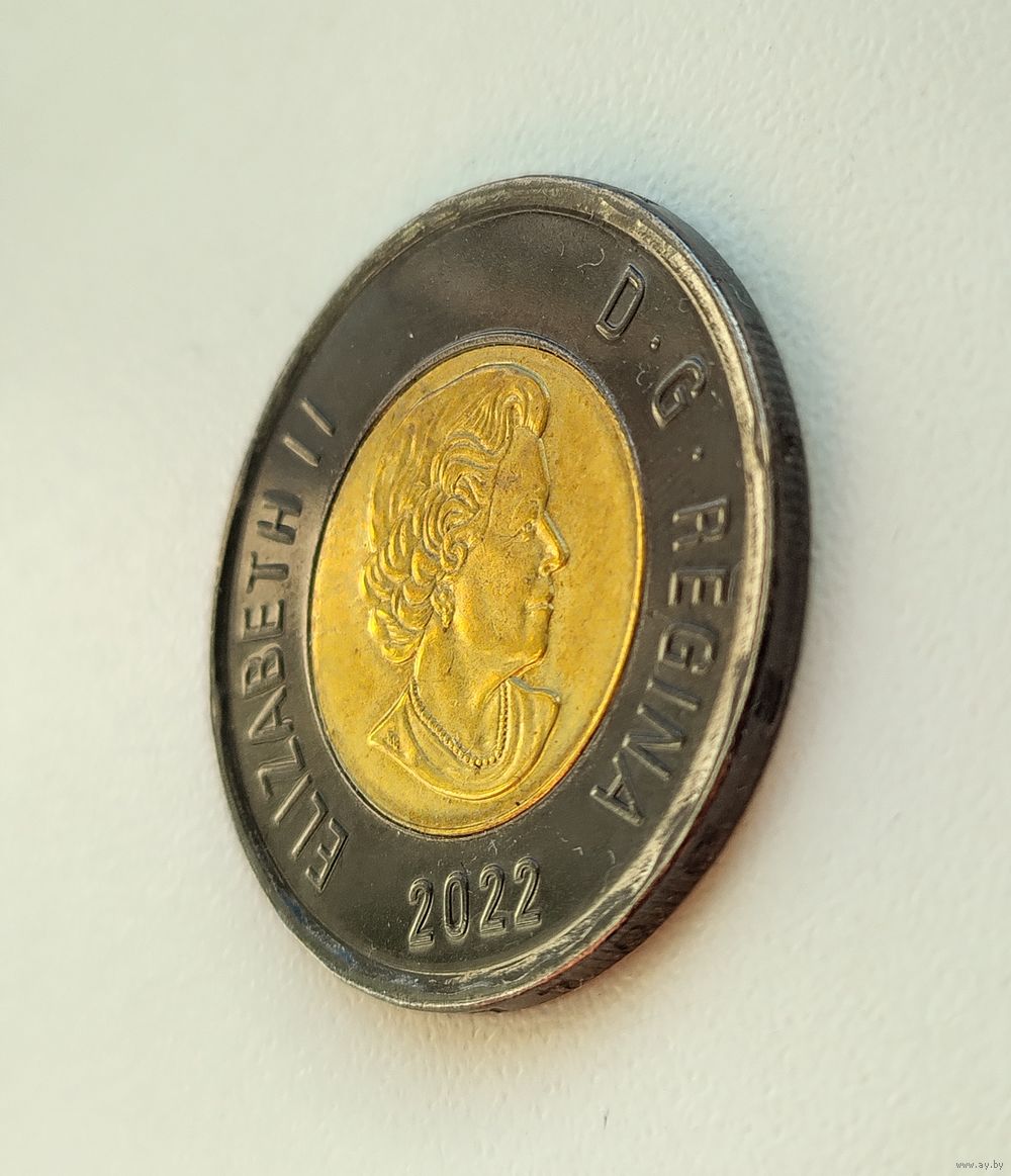 Канада 2 доллара 2022 г. Чёрный доллар. Траурный доллар. Чествование королевы Елизаветы II.